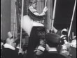 MOT 1950: THE VATICAN: VS Pope Pius XII (dressed in Papal Tiara, gilded vestments) being carried in insedia gestatoria (papal chair) down hallway, gesturing w/ hands to people.
