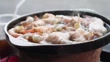 Pork and Shrimp grilled with butter in an iron pan - 4K stock video