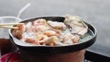 Pork and Shrimp grilled with butter in an iron pan - 4K stock video