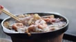 Pork and Shrimp grilled with butter in an iron pan - 4K stock video