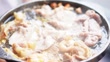 Pork and Shrimp grilled with butter in an iron pan - 4K stock video
