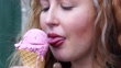 Portrait of a happy young woman eating an ice cream - HD stock video