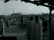 ITN Roving Report: Portrait of a Northerner; Viaduct or acqueduct structure with several archesGoats and cattle on rocky barren landscape, street with cattle walking in back view and man wearing robes riding Arab horseBuildings including Emir's palace, Kano mosque and housing, mostly flat squat structures of mud and strawStreet and market scenes including laden mules driven down street, Northern Nigerians, mostly Muslim men, walking around and chatting, close back view man carrying bundle of clothes on his head, men leading and riding donkeys, man sitting sewing cloth using old treadle sewing machine, stallholder preparing a kind of pancake, older man surrounded by bolts of cloth and old male street vendor with small white goatee beard and white hat