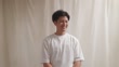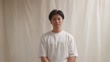 Portrait of smiling Japanese businessman with touch his hair - 4K stock video