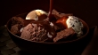 Pouring caramel sauce over ice cream sundae - HD stock video