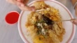 Pouring Chili Sauce on Pan Fried Crispy Mussel - HD stock video