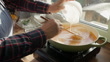 Preapring Katsu Curry - Japanese Curry with Chicken Served with Rice