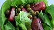 Adding white onion small pieces. The dish already has tomato slices and green stuffed olives. Salads have many health benefits including being a source of dietary fiber, helping weight control, and protecting heart health