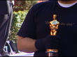 Film: Academy Awards: Preparations; USA: California: Los Angeles:EXTPeople carrying oscar statuettes along red carpet covered with plastic sheeting during rehearsals for the Academy Awards ceremony / Kodak Theatre INTLarge Oscar statuette covered in plastic sheeting