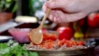 Preparing homemade quesadilla with ground beef and salsa