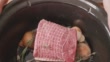 Preparing roast beef in a stone pot - 4K stock video