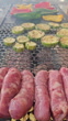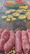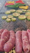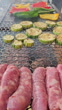 Preparing sausage and vegetables on the barbecue - 4K stock video