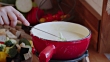 Preparing Swiss Cheese Fondue in a Pot Served with Bread