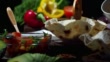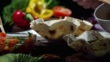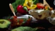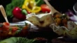 Preparing homemade vegan taco salad - filling tortilla bowls with grilled vegetables