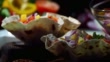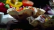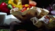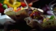 Preparing homemade vegan taco salad - filling tortilla bowls with fresh vegetable salad
