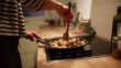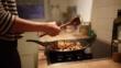Woman is preparing dinner at her home, cutting the vegetables for the vegan couscous with different oriental spices.