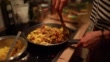 Woman is preparing dinner at her home, cutting the vegetables for the vegan couscous with different oriental spices.