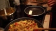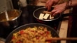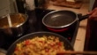 Woman is preparing dinner at her home, cutting the vegetables for the vegan couscous with different oriental spices.