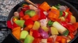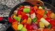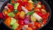 December 30, 2023 - Granada, Spain: A close up of a pan full of fresh vegetables and chicken for a tagine couscous