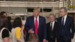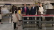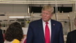 U.S. President Donald Trump listens to an employee during a tour of the new Louis Vuitton factory in Alvarado, Texas. (No audio)