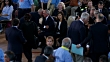 President of the Senate of Italy Pietro Grasso, Italy's President of the Chamber of Deputies of Parliament Laura Boldrini during a funeral service for victims of the earthquake, at a gymnasium arranged in a chapel of rest on August 27, 2016, in Ascoli Piceno. A mass funeral has taken place in Italy for some of the 290 people killed in Wednesday's powerful earthquake. Thirty-five victims from the town of Arquata were mourned at a sports hall in the regional capital, Ascoli Piceno. (Footage by Manuel Romano/NurPhoto)