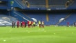 Soccer Aid 2019: Press launch ahead of event; ENGLAND: London: Chelsea: Stamford Bridge:EXTJohn Terry (Ex-England and Chelsea player) doing warm-ups during training session / Sam Allardyce (Ex-England manager) talking to cameraman (not heard) / Susanna Reid (TV presenter) talking to Allardyce and cameraman (not heard) / Lee Mack (Comedian) warming up and taking part in training session / Jamie Redknapp (Ex-England and Liverpool player) during training session / Allardyce and Terry along / Rachel Yankey (Ex-England and Arsenal Women's player) and Katie Chapman (Ex-England and Chelsea Women's player) during training session / Mo Farah (Athlete) along during training session / various shots of England team training / team huddle with Allardyce speaking to players (5 of 20).