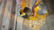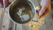 Seasoning with salt, pepper and sugar of reduced to syrup pressure-caramelised yellow onions. Simmering over medium heat. Ready to be served.