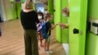 TURIN, ITALY - SEPTEMBER 15: A Primary school child with a protective mask disinfects his hands during the first day of school on September 15, 2020 in Turin, Italy. Don Milani school in the Vinovo district will start the fall semester with a model to ensure a safe reopening by installing sinks and soap dispensers outside each classroom, creating social distancing screens in classrooms and dining areas and installing hand sanitiserÌýdispensers. According to the Ministry of Health, Coronavirus infection rates are climbing again in Italy from an average of 1000 new cases per day. (Photo by Diego Puletto/Getty Images)