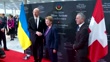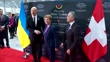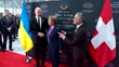 LAUSANNE, SWITZERLAND - OCTOBER 17: (L-R) Prime Minister of Ukraine Denys Shmyhal, President of the Swiss Confederation Viola Amherd and Federal Councillor and Head of the Swiss Federal Department of Foreign Affairs Ignazio Cassis pose for a photo during the Second Ukraine Mine Action Conference on October 17, 2024 in Lausanne, Switzerland. With Ukraine being one of the most mined countries in the world, innovations, such as robots, drones and artificial intelligence, are making it possible to speed up the demining process. Such was discussed during the Second Ukraine Mine Action Conference. This year, it was attended by representatives of more than 50 countries. (Footage by SLM News/Global Images Ukraine via Getty Images)