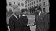 Prince Albert on set with Bob Hope / Prince and entourage walking on Paramount lot / Paramount Pictures Corporation V-President Y Frank Freeman introduces Prince Albert to Cecil B DeMille, Prince shakes hands with actor Mel Ferrer, with Danny Kaye, Freeman has Kaye join them in receiving line /Prince shakes hands with Audrey Hepburn / Prince and entourage tour lot / Prince shakes hands with Jerry Lewis dressed as cowboy, Lewis removes white hat and shakes hands again / VS Prince Albert and DeMille look at chariot on lot