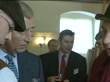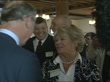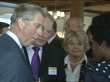 Prince Charles visit to Tower of London and cruise up River Thames; Prince Charles chatting to more people at reception, including Judith Chalmers (Television presenter) / Cured meats on stall display and various of Prince Charles talking to meat producers wearing waistcoats and hats, and tasting samples of sausage