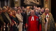 Prince Edward attends ANZAC service at Westminster Abbey; ENGLAND: London: Westminster Abbey:INTServicemen carry flags up aisle / choir and clergy including The Very Reverend Dr David Hoyle (Dean of Westminster Abbey) along / Prince Edward, Duke of Edinburgh along / Prince Edward talking with clergy / Stephen Smith (Australian High Commissioner to the UK) and Phil Goff (New Zealand High Commissioner to the UK) talking with clergy and along
