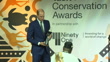 Prince of Wales attends the Tusk Conservation Awards; ENGLAND: London: The Savoy Hotel:INTGV of Liz Bonnin (TV Presenter) introducing Prince William, Prince of Wales SOT / GVs of William giving award to Dr Ekwoge Abwe (Prince William Award Winner).