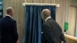 Prince Philip being introduced to people and unveiling plaque to mark the opening of the Warner Stand and jokes "You are now seeing the world's most experienced plaque unvieler" SOT / plaque