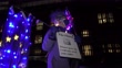 LONDON, ENGLAND – JANUARY 17: A pro-European protestor with a placard around her neck with a photograph of a young Boris Johnson on that reads, “The Omen, when I grow up I will take away your rights”, holds illuminated British and European Union flags as drummers play on the Kill The Bill protest outside House of Lords on January 17, 2022 in London, England. Activists view sections of the police, crime, sentencing and courts bill as an attack on the right to protest, inspiring a series of "Kill the Bill" protests around England in recent months. The bill's anti-protest provisions would lower the threshold for when police can ban demonstrations, and create new criminal offences for residing on land without authorisation. (Footage by Jason N. Parkinson/Getty Images)