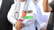 MANAMA, BAHRAIN - OCTOBER 13, 2023: A Pro-Palestine rally was held in the Bahraini capital of Manama on Friday (Oct. 13).Thousands of people chanted slogans in support of Palestinians as they waved Palestinian flags in their hand.(Footage by Ayman Yaqoob /Anadolu Agency via Getty Images)