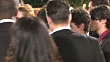 2009 GOLDEN GLOBES AWARDS RED CARPET: MS- profile/ back view of Jonas Brothers ( Kevin Jonas, Joe Jonas, Nick Jonas ) in crowd on red carpet
