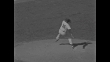 CU program with words "1955 All Star Game" on cover / pan across crowd in stands in Milwaukee County Stadium / shot of crowd in stands / WS players running onto field / shot of people in crowd / Philadelphia Phillies' pitcher Robin Roberts on mound throws pitch / shot of people in crowd / CU NY Yankees' Mickey Mantle at bat / Roberts looks at catcher for signal and shakes head / Roberts throws and Mantle hits home run / Mantle runs around bases / crowd in stands / Mantle and runner in front of him cross home plate / crowd in stands / Boston Red Sox' Ted Williams at bat / Brooklyn Dodgers' Don Newcombe throws pitch / Williams hits long fly ball which is caught at wall by NY Giants' Willie Mays / CU two women in crowd applauding / NY Yankees' Whitey Ford on mound throws warm-up pitch / CU Mays swinging bat before batting / Ford throws pitch / Mays hits single / crowd applauds / Chicago Cubs' Randy Jackson hits single, Mays scores from third / crowd reacts / Boston Red Sox' pitcher Frank Sullivan on mound / CU Milwaukee Braves' Hank Aaron at bat / Sullivan throws and Aaron hits single / Cincinnati Red's Ted Kluszewski scores / Jackson rounds third / Jackson slides into home plate / crowd applauds / crowd in stands / St. Louis Cardinals' Stan Musial at bat / Musial hits home run / crowd reacts / Musial rounds third and crosses home plate where he is mobbed by teammates congratulating him