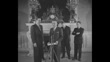 Provisional President Georges Bidault speaking at microphone standing next to American actor Ray Milland, row of officials standing behind them; Bidault hands Milland the Cannes Film Festival's Grand International Prize (International Grand Prix) for best actor; the two shake hands / closer shot of Milland speaking in French to Bidault