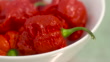Pull focus onto bowl of scotch bonnet chillies, UK - HD stock video