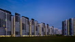 Timeplase of Public Housing Apartments of Punggol New Town, Singapore. During dusk hour.