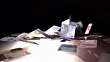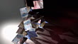 CGI, TD, SLO MO, pyramid of Euro banknotes, falling, studio shot - HD stock video