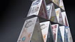 CGI, TU, CU, SLO MO, pyramid of various currency banknotes, falling, studio shot - HD stock video