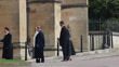 WINDSOR, ENGLAND - FEBRUARY 27: Queen Noor of Jordan, Kyril de Bulgaria, Princess Elena Of Spain, Princess Cristina Of Spain and Juan Valentin Urdangarin attend the Thanksgiving Service for King Constantine of the Hellenes at St George's Chapel on February 27, 2024 in Windsor, England. (Footage by Europa Press via Getty Images)