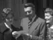 Queen's Birthday Honours 1959; ENGLAND: London: EXTMS Michael Redgrave (Actor) out of house in Hans Crescent with wife Rachel Kempson and daughter Lynn RedgraveCMS They read a telegramMS They walk off down the road