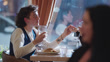 Queer person talks with their partner at a fine dining restaurant - 4K stock video