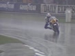 NORTHAMPTON, ENGLAND - AUGUST 3: Race leader Wayne Gardner rides on a very wet track on his Rothmans Honda NSR500, saving himself from a highside crash exiting Woodcote during the British Motorcycle Grand Prix at Silverstone Circuit on August 3, 1986 in Northampton, England. (Footage by Duke Video/Getty Images)