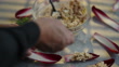 Radicchio with tuna salad preparation step. Drained tuna, parsley, chopped hard-boiled egg, mayonnaise, ketchup and cayenne pepper into tuna salad mixing bowl. Putting tuna salad into leaves of radicchio.