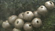 Puffballs release spores as it rains; rain falls on a single puffball as it releases spores.