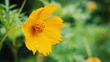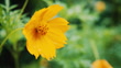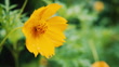 Rain falling drops on yellow cosmos flowers